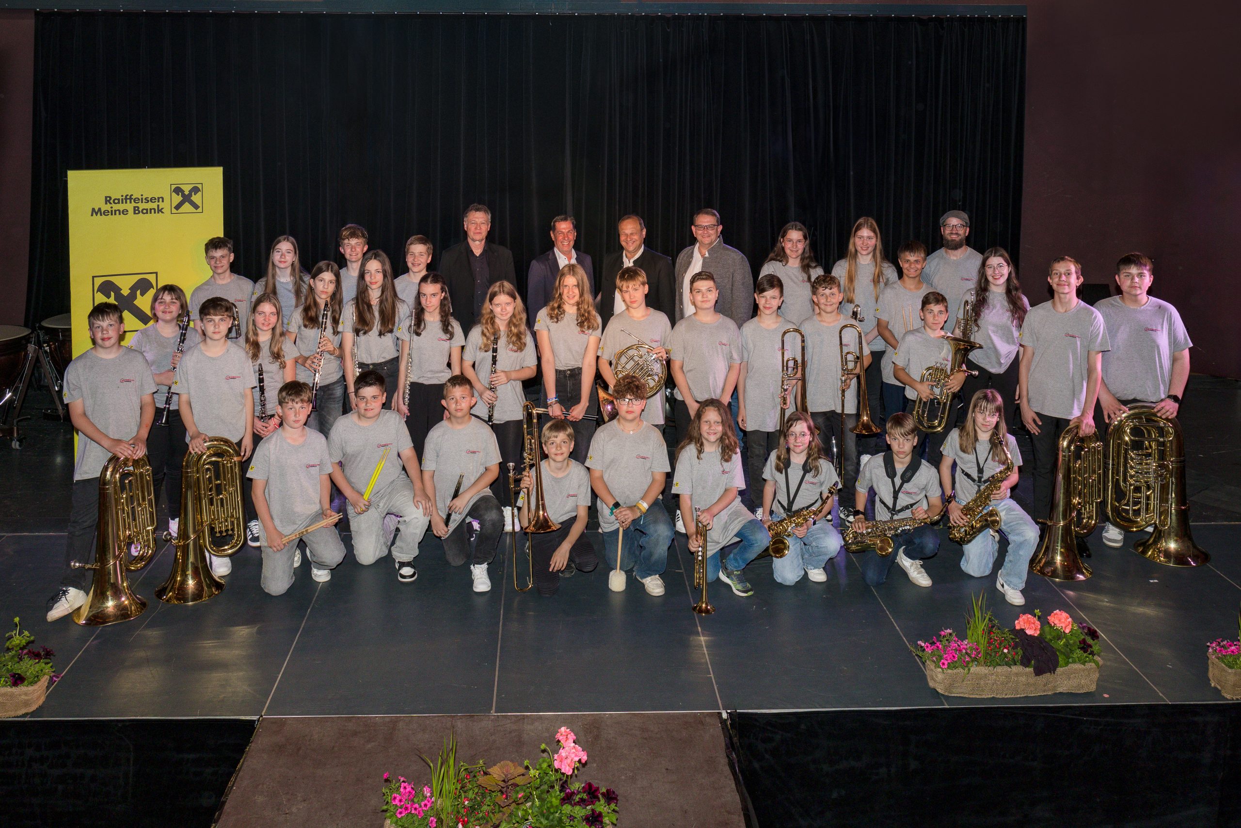 Das Jugendblasorchester der Musikschule Mureck unter der Leitung von Georg Laller trat bei diesem Konzert zum ersten Mal in den neuen T-Shirts, gesponsert von der RAIBA Mureck auf und präsentierte sich dadurch in einem einheitlichen Outfit.